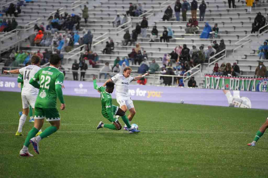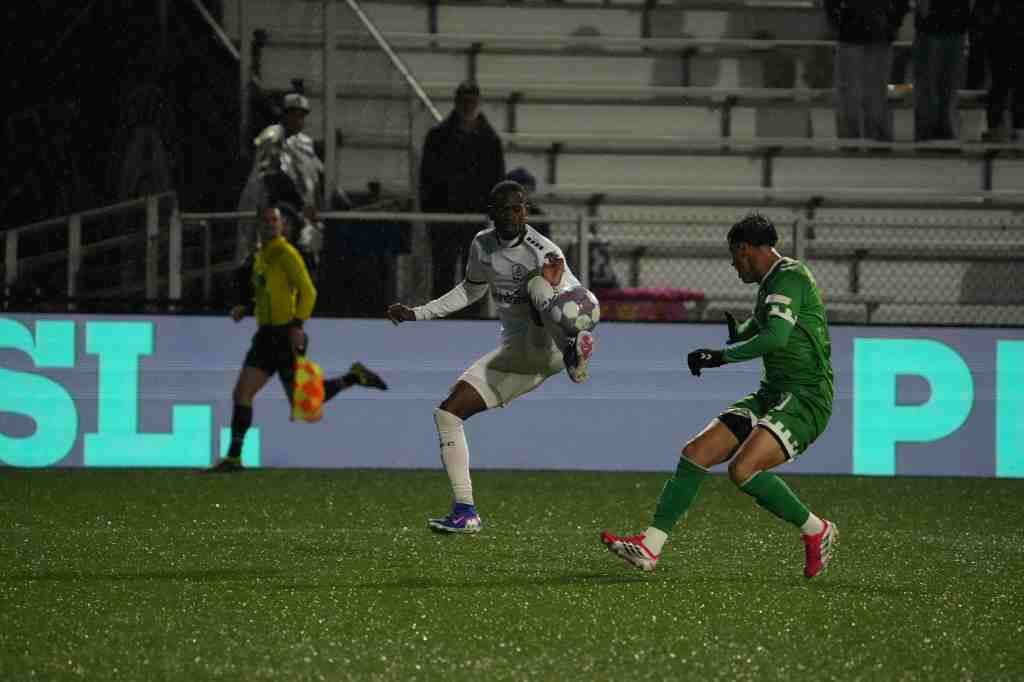 Rhode Island FC began to establish itself in the attack as the second half wore on, nearly finding the opening goal spectacularly in the 59th minute when Jojea Kwizera’s accurate long-range shot was denied by a diving Siaha. Although the goalkeeper spilled the rebound and nearly allowed Rhode Island FC to convert an advantageous bounce, Anderson came to the rescue once again with another goal-saving sliding clearance.