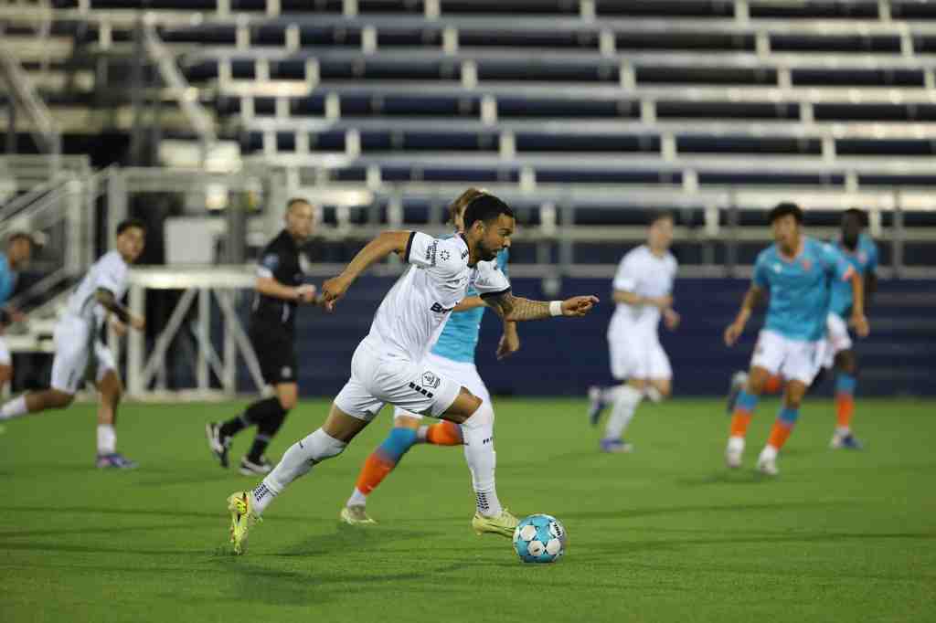 Rhode Island FC (0W-2L-1T) pressed early, nearly finding the first goal when Agústin “Pity” Rodríguez threatened twice down the left wing. In the 11th minute, goalkeeper Felipe Rodriguez rushed off his line to deny Pity’s one-on-one chance. Ten minutes later, Pity sprinted down the same wing in a nearly identical breakaway, this time sending a low attempt just narrowly wide of the far post.