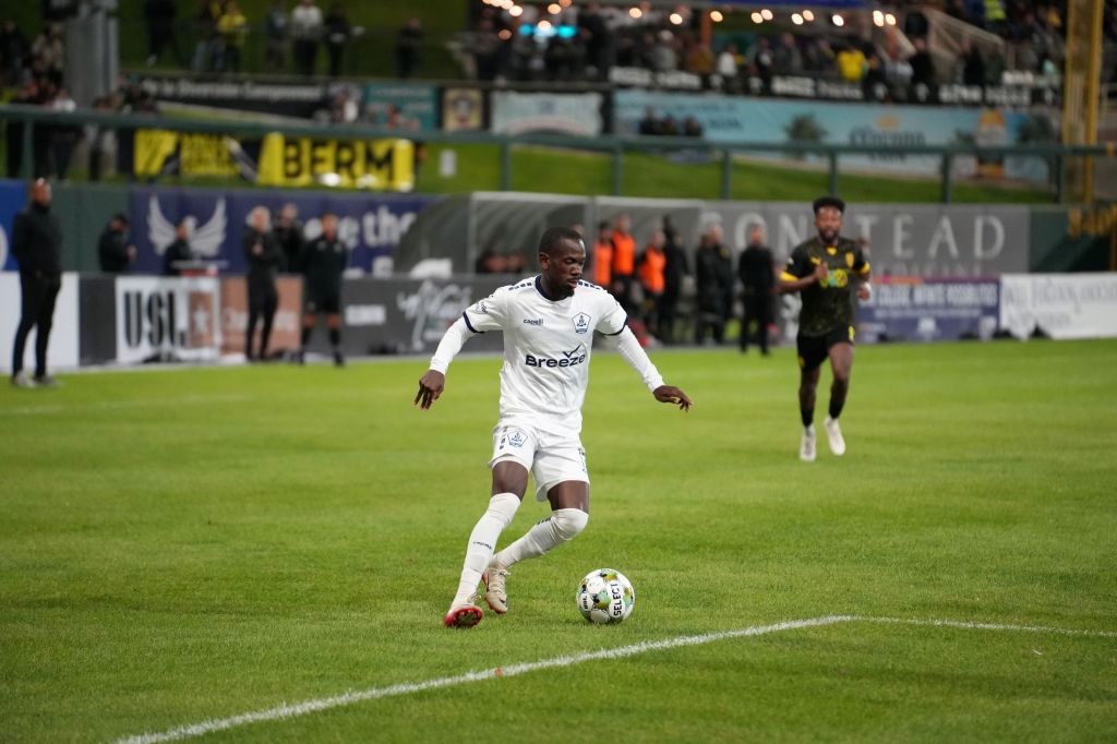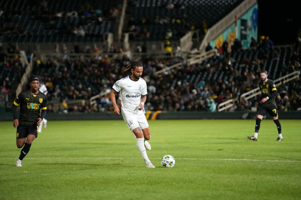 Rhode Island FC responded positively to the goal, slowly growing into the game and eventually finding the equalizer in the 38th minute when the Ocean State club won a free kick in the left corner. Noah Fuson stepped over the ball and whipped a dangerous free kick at the top of the box, initially finding the head of Amié Mabika before Hugo Bacharach got the final touch, forcing the ball into the back of the net with his body box to level the score at 1-1.