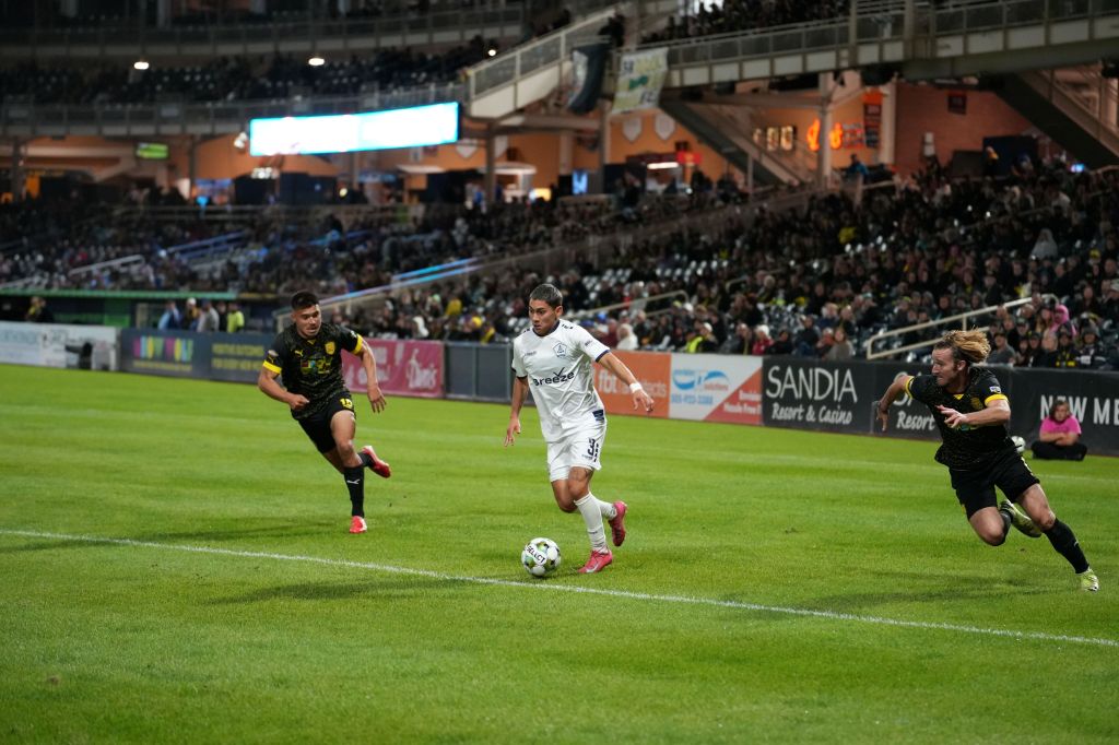 After a slow start to the second half, Rhode Island FC found another dangerous chance to equalize in the 70th minute when Aldair Sanchez saved a loose ball on the goal line before finding Maxi Rodriguez with a curling cross. Rodriguez knocked a header on frame, but it was once again denied by Shakes. In the 75th minute, the Ocean State club ventured forward on the attack again, and Fuson launched a long-range shot just over the crossbar. One minute later, Clay Holstad nearly found the top corner with a spectacular long-range effort, launching a volley from well outside the box that just missed the target.
