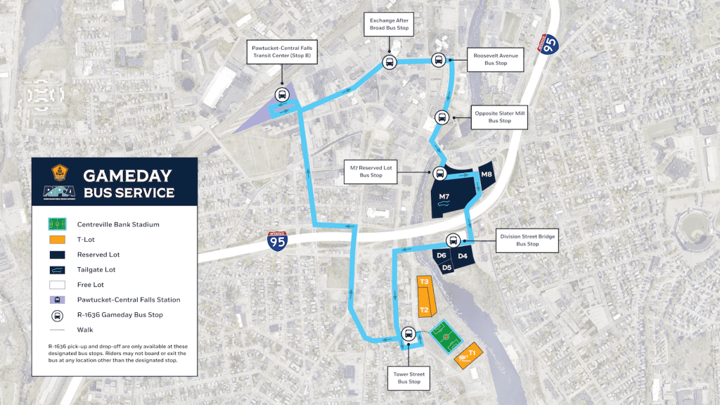 Rhode Island has a robust network of bus and commuter rail services. The Pawtucket/Central Falls Transit Center is about a mile from Centreville Bank Stadium.