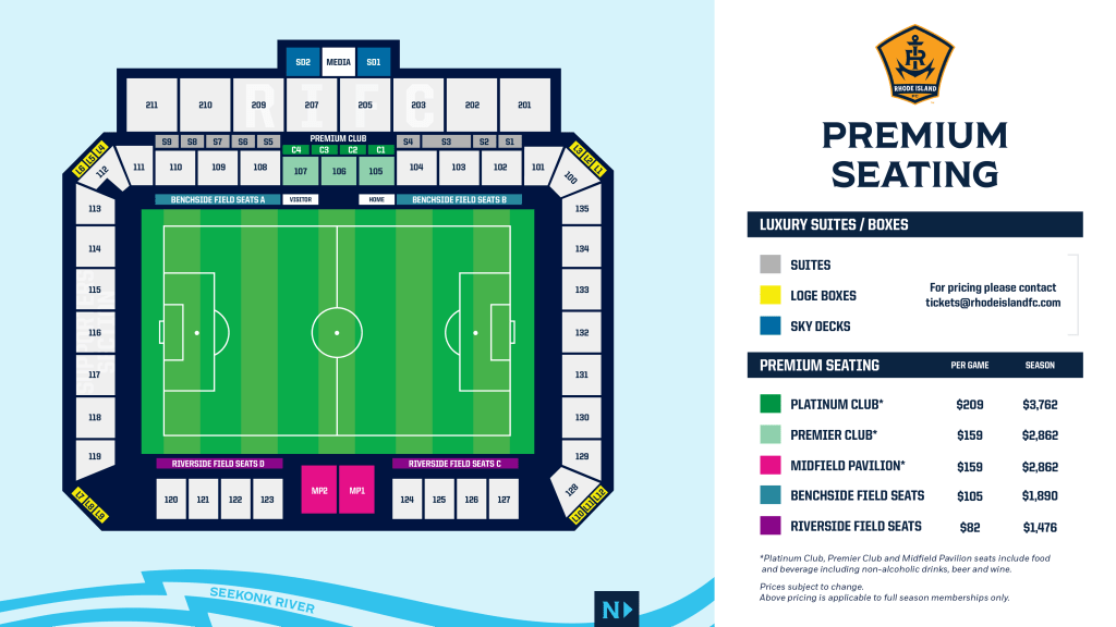Enjoy an RIFC game on the pitch with Benchside or Riverside field seats. Both provide exclusive access to the field to enjoy pregame warmups and the game in plush seats.