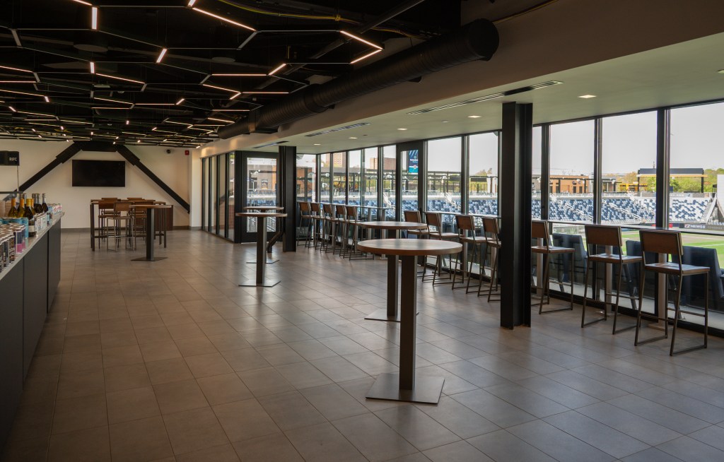 Midfield Pavilions are climate-controlled pitch-level spaces with versatile indoor and outdoor seating options. They offer up-close views of all the on-field excitement.
